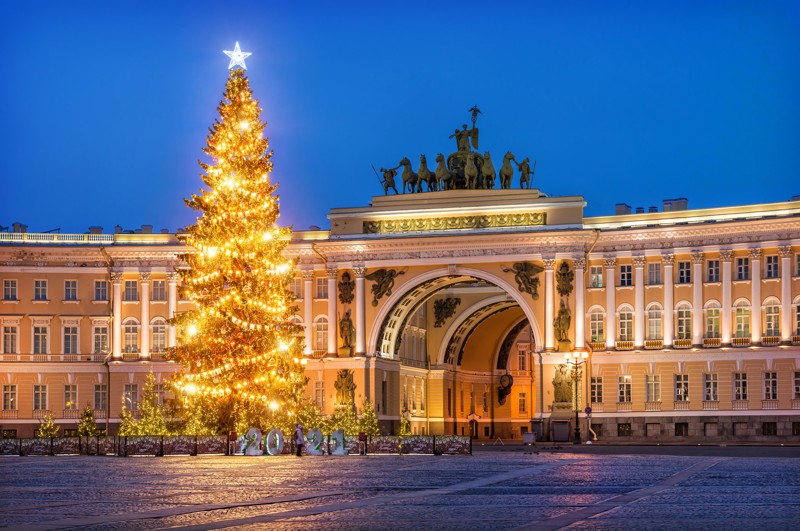 Мы пройдём новогодним маршрутом: Дворцовая площадь — дворы Капеллы — Большая Конюшенная улица — Конюшенная площадь — набережная канала Грибоедова — Невский проспект — Дом Книги — церковь Святой...