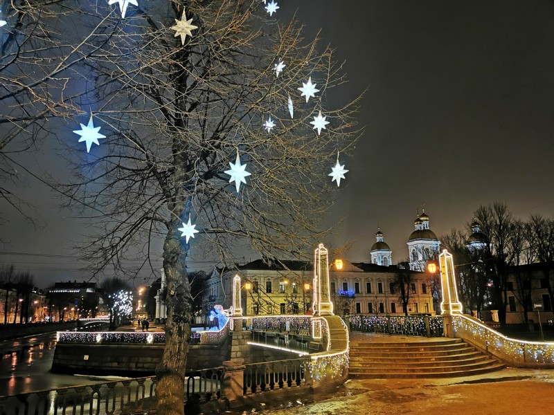 Увидите главные достопримечательности исторического центра, украшенные к Новому году: Исаакиевскую площадь, «Семимостье» и «Троемостье», храм Спас на Крови, сверкающую башню...